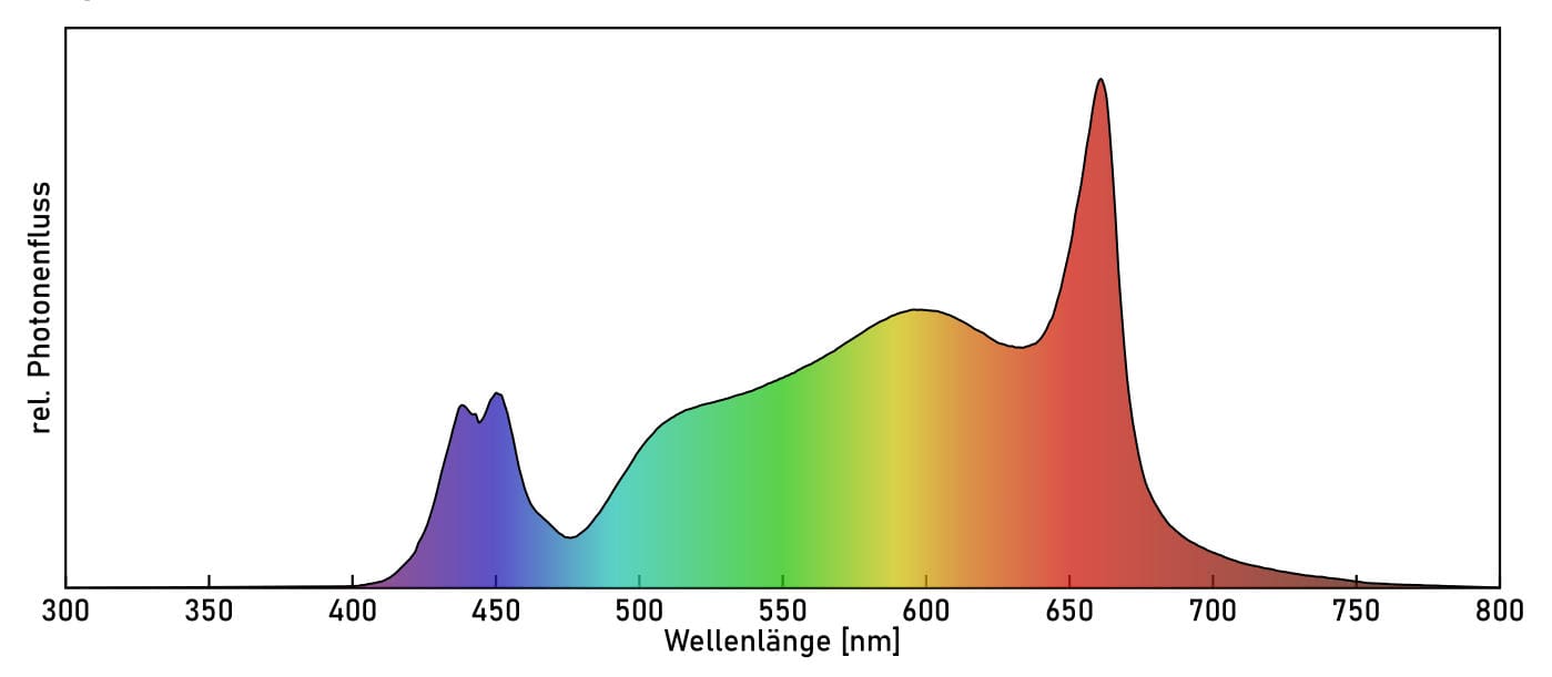 Mit seinem dimmbaren Photonenfluss von etwa 155 μmol/s erreicht es auf einer Fläche von 60×60 cm eine Photonenflussdicht (PPFD) von über 420 μmol/(m2 s).