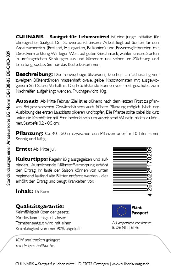 Culinaris | Brauweg 55 | Niedersachsen | Göttingen, Deutschland, 37073 | info@culinaris.de | https://www.culinaris-saatgut.de