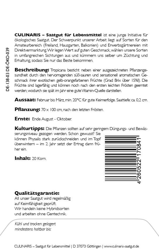 Culinaris | Brauweg 55 | Niedersachsen | Göttingen, Deutschland, 37073 | info@culinaris.de | https://www.culinaris-saatgut.de