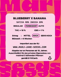 Blueberry Banana ist eine sativa-dominante Sorte, die mit intensiven Aromen von reifen Bananen und süßen Blaubeeren begeistert. Die Kreuzung aus Banana Kush und Blueberry bringt eine kräftige, körperliche Wirkung, die ideal für Ruhe und Entspannung sorgt. Dank ihrer kompakten Wuchshöhe und der kurzen Blütezeit ist sie perfekt für den diskreten Indoor-Anbau geeignet.