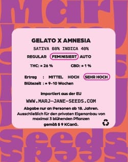 Beschreibung: Ein Hybrid, der die kräftige, zerebrale Energie von Amnesia Haze mit der beruhigenden, süß-cremigen Wirkung von Gelato vereinen würde, könnte für einen ausgewogenen, aber intensiven Effekt sorgen. Diese hypothetische Sorte könnte ein fruchtiges Zitrus- und Pinienaroma mit Noten von Beeren und einer sanften Süße bieten, ideal für Momente, die Kreativität und Entspannung erfordern.