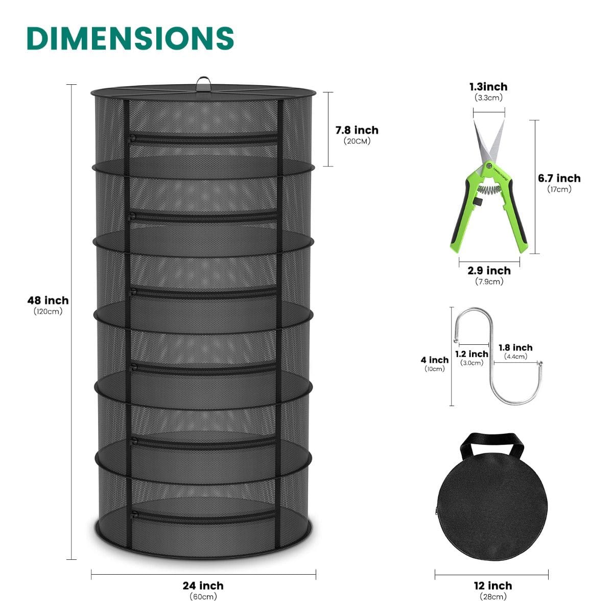 Ideal For Drying Plant Material – Designed to dry and cure plant material through natural wind drying, the Mars Hydro 6-layer hanging drying rack is perfect for drying weeds, herbs, hydroponics, nuts, seeds, flowers, and vegetables.