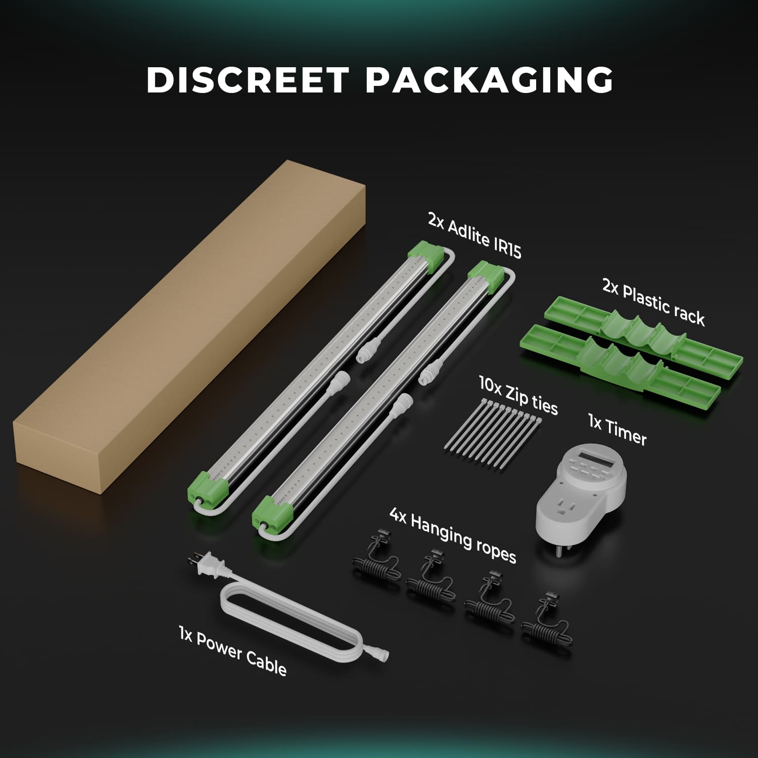 Tiefes Eindringen mit einem 730-745nm-Spektrum: Das Adlite IR15 kann im Vergleich zu sichtbarem Licht tiefer in das Pflanzengewebe eindringen. Dieses tiefe Eindringen kann das Wachstum der Stängel und die Blüte stimulieren. Zusätzliche Erwärmung: Das Adlite IR15 trägt zur Erwärmung des Pflanzendachs bei, kann Stoffwechselprozesse anregen und die Pflanzengesundheit verbessern. Regulierung des Pflanzenwachstums: Ermöglicht ein schnelleres Umschalten der Pflanzen von der vegetativen zur Blütephase, wodurch der gesamte Wachstumszyklus verkürzt wird. Erhöhte photosynthetische Effizienz: Das Adlite IR15 erzeugt mit tiefroten Lichtern einen Schattenvermeidungseffekt, um robustes Stängelwachstum zu fördern. Maximieren Sie Ihre Ernte mit vollständiger Adlite-Beleuchtung: Es ist wichtig, zusätzliches Licht hinzuzufügen, um das Pflanzenwachstum zu optimieren. Adlite IR15/UV30/Tiefrot30 werden für Hauptleuchten unter 500W empfohlen, wie z. B. FC4800, FCE4800, TS3000 und SP3000.