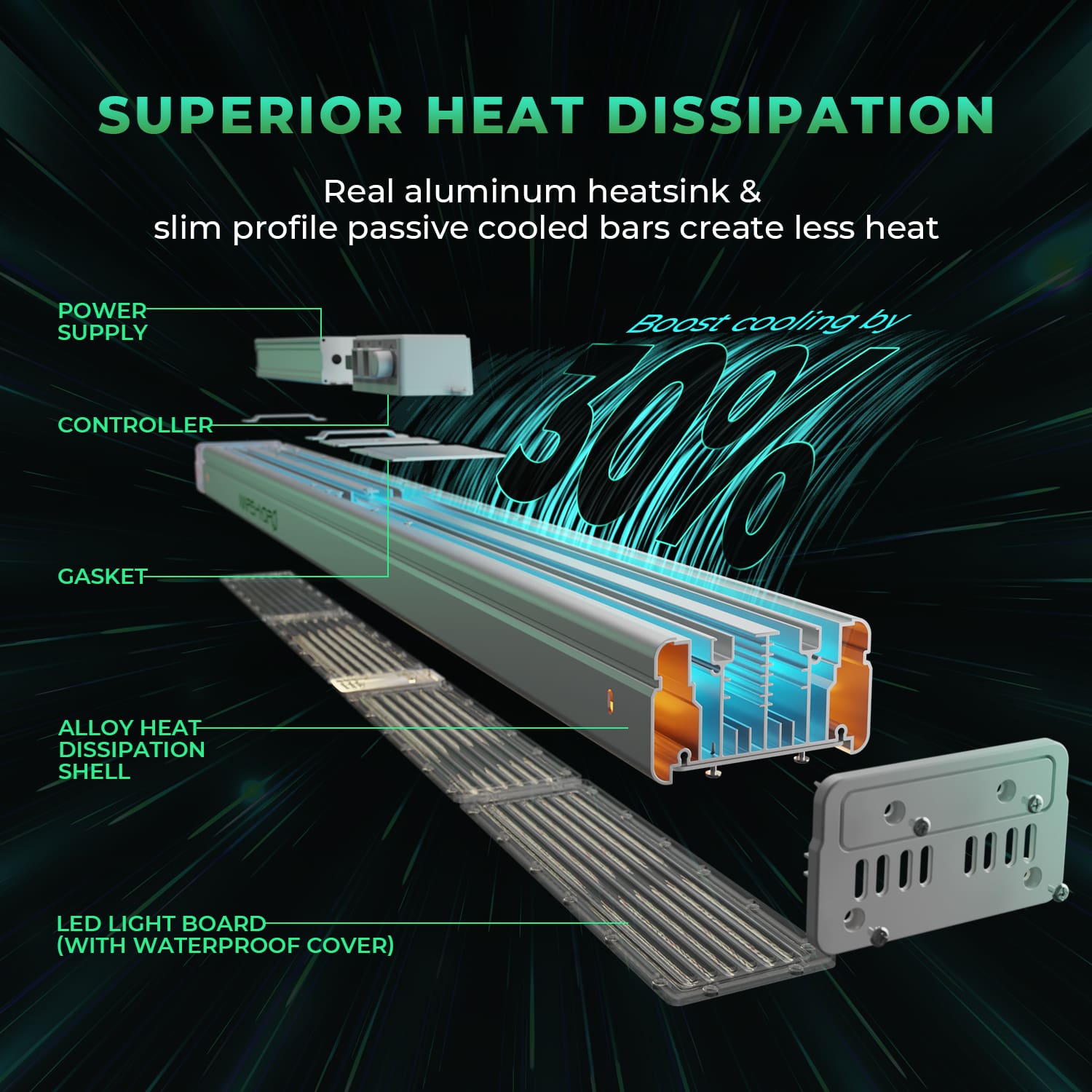 Die Mars Hydro NEUE SP 3000 LED-Wachstumsleuchte bietet vollständige Spektrumsunterstützung für alle Wachstumsphasen von Pflanzen und ist ideal für 120×60 cm große Wachstumsbereiche oder hochwachsende Zimmerpflanzen. Sie bietet einen hohen PPFD, ist wasserdicht und verfügt über eine effiziente Wärmeableitung. Die Bluetooth-Steuerung ermöglicht einfache Anpassungen.
