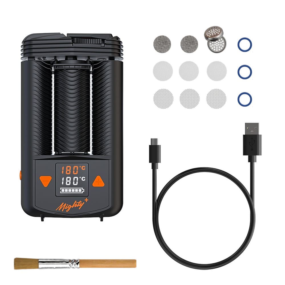 'Mighty'+ Vaporizer Komplett-Set – Der mobile, batteriebetriebene 'Mighty+' Verdampfer zeichnet sich durch eine sehr einfache Handhabung aus. Durch das integrierte LED-Display kann die Temperatur einfach und schnell direkt am Gerät eingestellt und der Ladezustand des Akkus abgelesen werden. Der 'Mighty' besitzt zwei Hochleistungsakkus, die eine längere Nutzungsdauer und ein schnelleres Aufheizen ermöglichen.