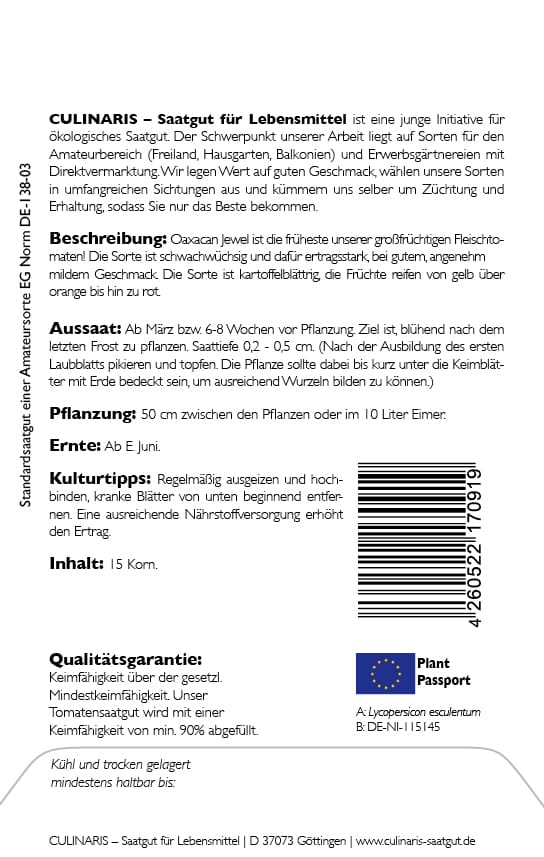 Culinaris | Brauweg 55 | Niedersachsen | Göttingen, Deutschland, 37073 | info@culinaris.de | https://www.culinaris-saatgut.de