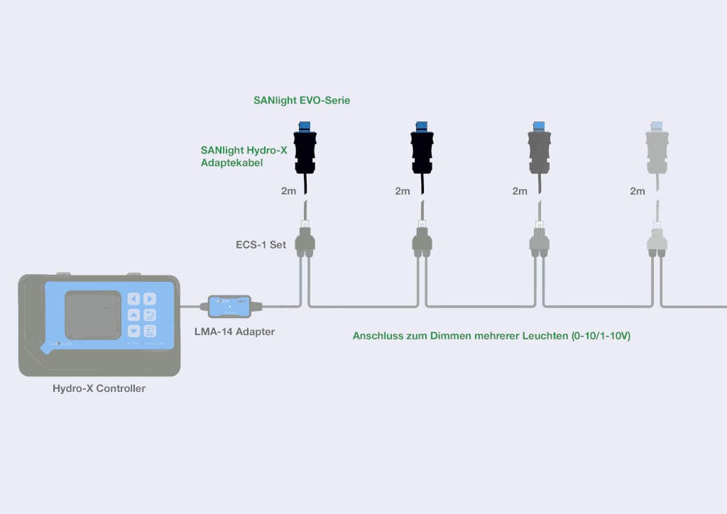 Hinweis: Alle weiter benötigten Komponenten (Y Verteiler, Light Adapter etc.) müssen bei Trolmaster oder deren Vertriebspartner besorgt werden.