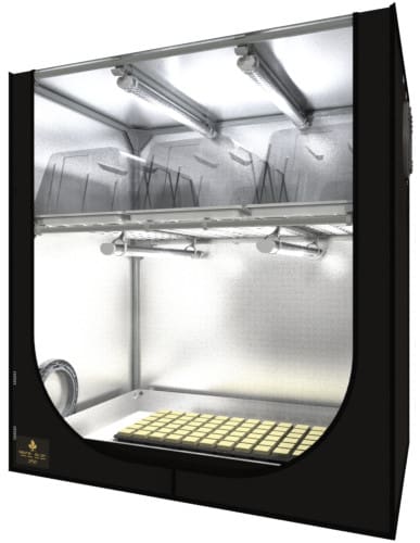 Wie bei den anderen Pflanzenzelten bietet auch der Propagator dem Kunden die gleichen Vorzüge wie die größeren Modelle. So ist das System besonders lichtdicht und durch die Mylarfolie wird ein hoher Reflexionsgrad garantiert (95%). Der Stoff ist besonders fest und starkwandig und lässt sich einfach von innen und außen abwaschen.
