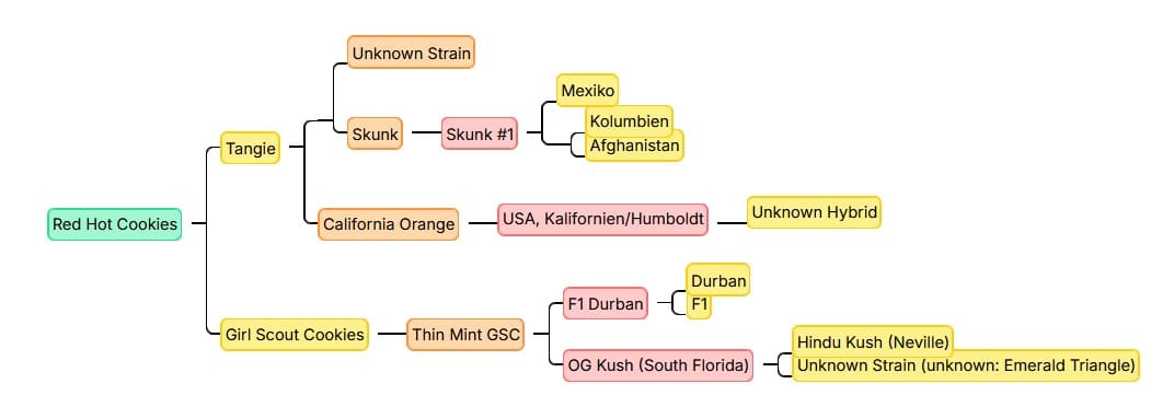 Red Hot Cookies ist eine feminisierte Cannabissorte von Sweet Seeds, die aus der Kreuzung von Tropicanna Cookies (Girl Scout Cookies x Tangie) und Tangie entstanden ist. Diese Sorte zeichnet sich durch ihre auffälligen roten Blüten aus, die bei etwa 60% der Pflanzen in den letzten Blütewochen auftreten.